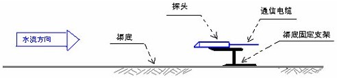 探頭安裝應(yīng)******水平于渠底(注意不是水平),同時保證與水流方向平行一致,探頭前端(沒有通信電纜的一端)逆水流方向并與水流方向夾角為180度,并且探頭前端不得有阻擋物干擾水流流態(tài),通信電纜線***好從探頭的下游沿渠底及渠道邊坡引出水面或從安裝支架的鋼管內(nèi)引出水面。