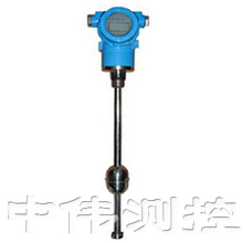 ZW-CZM系列高溫高壓型磁致伸縮液位計工作時,信號檢測單元發(fā)出詢問電流脈沖,該脈沖沿著波導(dǎo)絲產(chǎn)生一個環(huán)行脈沖磁場。在傳感器外管配有浮子,懸浮于變化的液面上下移動。由于浮子內(nèi)裝有一組長久磁鐵,所以浮子同時產(chǎn)生一個磁場。當(dāng)詢問電流脈沖磁場與浮子磁場相互作用,產(chǎn)生一個“扭曲"脈沖或稱“返回"脈沖,“返回"脈沖沿著波導(dǎo)絲向上傳輸,傳至拾振器上。根據(jù)“返回"脈沖與詢問電流脈沖的時間差,計算出浮子的實際位置,從而可準(zhǔn)確地測得液位。