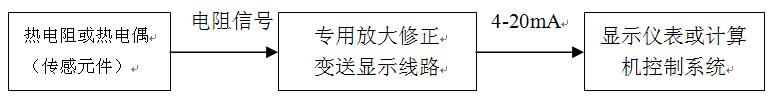 ZW-SBWR/Z系列一體化智能溫度變送器對(duì)于測(cè)溫元件為鉑熱電阻或銅熱電阻的變送器,其線(xiàn)路由測(cè)量、放大、整形、調(diào)整和信號(hào)轉(zhuǎn)換等幾部分組成。在被測(cè)介質(zhì)的溫度發(fā)生變化時(shí),測(cè)溫元件的電阻值將發(fā) 生相應(yīng)的變化,此變化經(jīng)測(cè)量線(xiàn)路轉(zhuǎn)換為電信號(hào),在經(jīng)高穩(wěn)定性運(yùn)算放大器放大,線(xiàn)形化校正電路進(jìn)行準(zhǔn)確的線(xiàn)形補(bǔ)償,輸出一個(gè)與被測(cè)溫度成線(xiàn)形關(guān)系的 4-20mADC電流信號(hào)。對(duì)于測(cè)溫元件為熱電偶的變送器,其線(xiàn)路組成除此幾部分外,還具有冷端補(bǔ)償電路。
