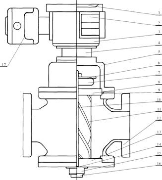 注:1、儀表盤2.電池3.二次表4.連接座5.U型帽6.發(fā)訊片7.定位齒輪8.上蓋板9.O型環(huán)10.軸11.轉(zhuǎn)子12.主體13., 上蓋板14.止推軸承15.調(diào)節(jié)螺釘16.底蓋17.遠傳體。