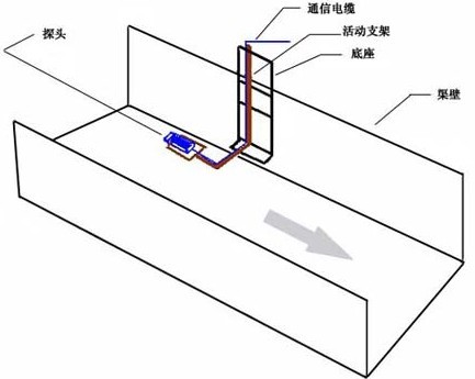 儀器探頭部分直接安裝于固定于渠道壁上的可拆卸簡易支架底部,并通過通信電纜與置于管理房(或微型工作間)的控制終端(具有控制、顯示、存儲功能)連接。